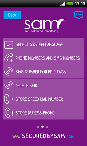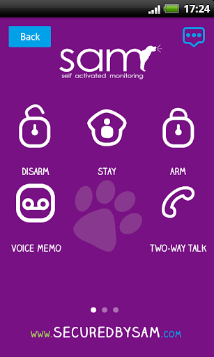 The SAM mobile app makes it easy to monitor your home from anywhere through your smartphone. Based on a pay-per-use platform with a small monthly access fee, SAM allows you to turn your alarm on or off remotely from your smartphone and SAM notifies of security