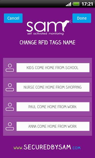 alerts by SMS and voice call, indicating which sensors have been triggered. SAM then leaves it up to the homeowner, to decide whether or not to call emergency services, since most alarms turn out to be false resulting in homeowners being penalized with false alarm