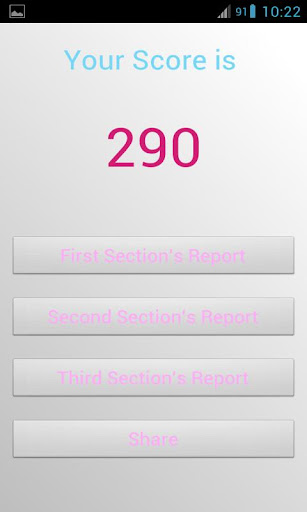 The student basically answers the questions in each section till the three sections are over and that's when the student gets to know his score and see a report menu where he finds a detailed report for each section he solved so he could find out what are the questions he didn't solve correctly and an explanation for it.