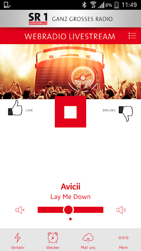 Mit der SR 1 App könnt Ihr überall das SR 1 Programm hören und zudem Songs per Klick bewerten. Schickt uns Bilder, Videos, Musikwünsche oder einfach eine Nachricht. Startet mit dem Radiowecker in den Morgen und bleibt auf dem Laufenden mit Nachrichten, Wetter, Verkehrsinfos und Konzerttipps aus dem Saarland.