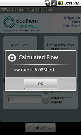 This app will estimate the current flow of your dethridge wheel, supports both the large and small wheels used by Southern Rural Water.
