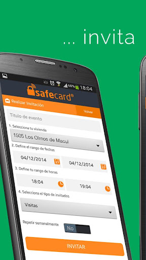 Safecard® envía invitaciones a través del teléfono a tus familiares, amigos y servicios por medio de una invitación digital que les permite ingresar fácilmente en el día y horario que tú definiste.