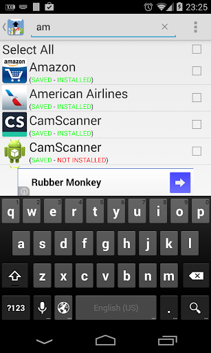 - Allows you to install several apps (if you saved its information before) from the Android Market with one clic, no need to look for them by opening the Android Market, typing their names and searching through the results list.