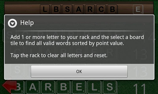 Stop scrabbling for anagrams! Scrabble For Anagrams calculates all valid words for your rack along with a specified tile on the board, sorted by point value. Useful for training (or cheating) at Scrabble. Tap the rack to clear current letters.