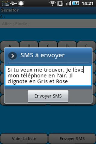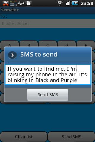 You just have to move your phone in the air to be spotted by your friends. You can quickly select the persons by whom you want to be found, Semafor will send them a pre-formatted SMS (and modifiable) to prevent them.
