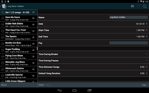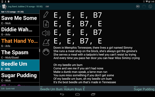 - More than a digital songbook: Set List Maker can store your lyrics and chord charts, but it can also keep track of your tempos, rehearsal notes and reference recordings and serves as an archive of all your set lists. You can even design your own screen layout with a drag-and-drop interface. Create a different database for each band you play in, enter all the info you need to manage your songs, then access it with the most flexible interface available.