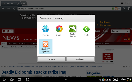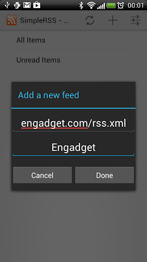 - it can intercept RSS links: if you click on an RSS subscription button in your preferred web browser you will have the option to open it with SimpleRSS. By doing so, that feed will be added to your feed list.