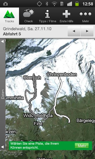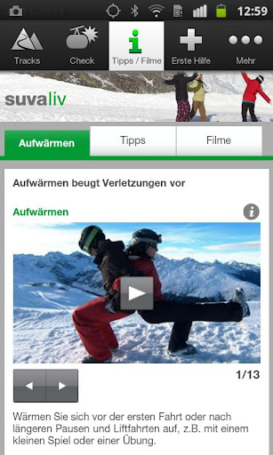Suva’s «Slope Track» records your downhill descent, the difference in altitude and your personal speed on the slopes and draws your attention to particular hazards. In addition, information on the skiing area as well as on snow and weather conditions for your skiing or snowboarding trip is exceptionally easy to call up.