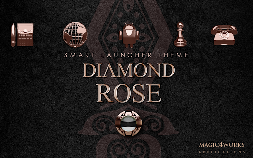 Diamond Rose Smart Launcher Theme gives your homescreen a brand new luxury look and makes your smartphone to a unique designer piece.