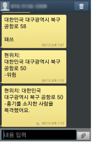 현재 위치와 대략적 상황을 버튼만 누르면 자동으로 문자 전송 시켜주는 어플