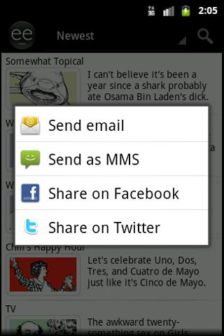 • Get topical humor right to your Android device, including cards that make fun of Android