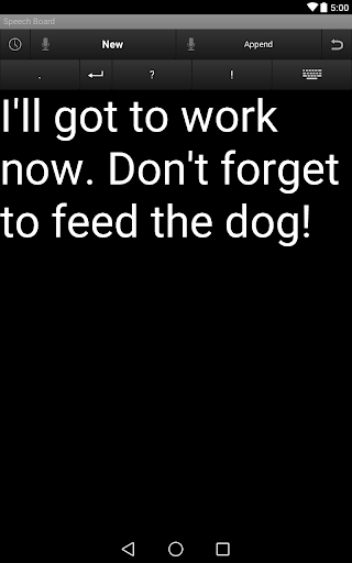 Speak'n'Show offers an easy way to communicate a short text message to a person who is deaf or hard of hearing, by using you voice: Just speak one or more phrases into the (listening) app and then held the device in the direction of the receipient. It let's you compose this message very fast - with big sized text and without showing unnecessary or distracting additional information (like there would be in a SMS or E-Mail app with small sized text)