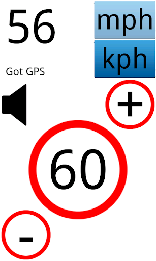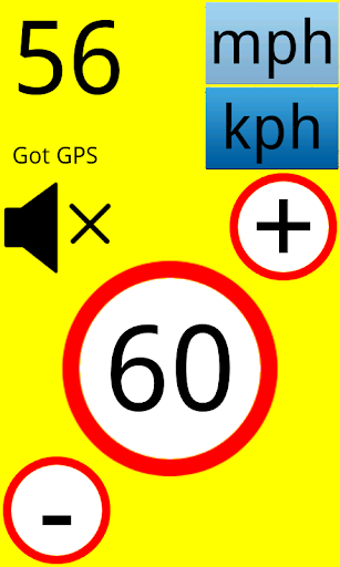 This app will show you your current speed in realtime in large clear letters. You can set a maximum speed quickly and easily using the large icons, and if you get close to it, the screen will change colour to warn you. If you actually exceed the limit, an audible alarm with sound to let you know you need to reduce your speed.