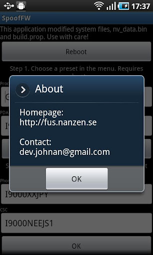Use this application to spoof a different firmware on your Samsung device to be used to get access to other regions updates in Kies 2.0.