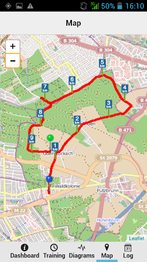 Training data like time, distance, speed, average speed, average pace, max. speed and altitude will be displayed and updated constantly.