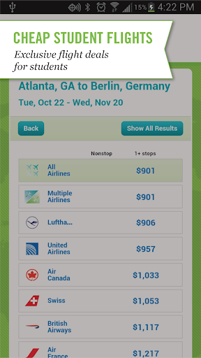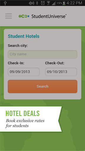 The leading mobile app for student travel deals. By negotiating directly with airlines and travel providers, StudentUniverse has deals you can't find anywhere else. Study abroad, weekend trips, backpacking adventure - whatever your reason for travel, book your flight and hotel to anywhere in the world cheap and easy, straight from your phone.