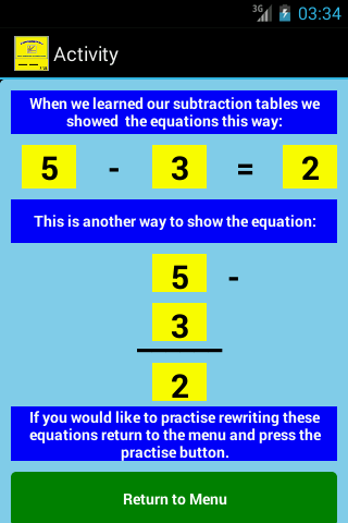 The app contains guides and practise sessions to help students gain confidence in processing subtraction calculations.
