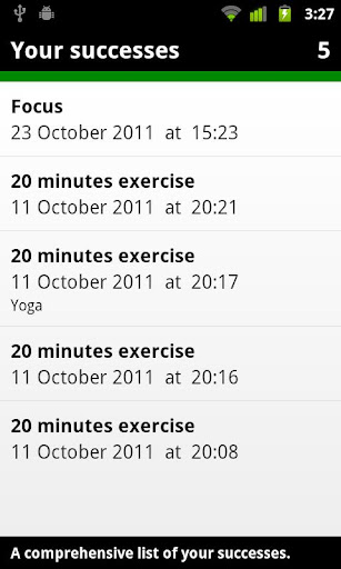 In Success Log you record your successes in exercise, in work, in dieting or any other aspect of life.
