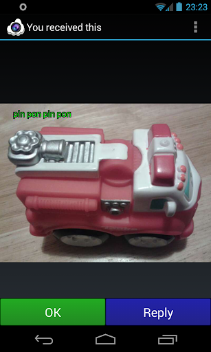 You can enter in communication mode, using the reply feature, which let you reply to the just received shot ! This communication is between him and you only ! Theses private shots are commented in blue. Others are in green !