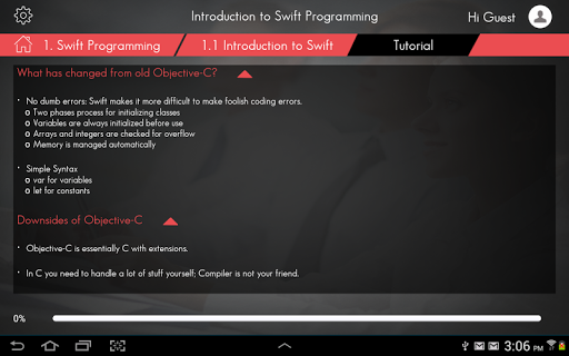 In this mode you can access first category in each app for free ("Introduction to Swift" in Swift Programming, "Introduction to Java" in Java Programming and "Introduction" in Computer Science)