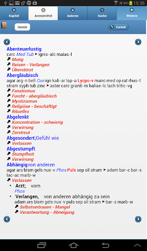 • Anzeige des Repertoriums mit oder ohne Arzneimitteln