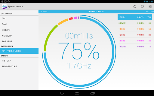 The Lite version of the most beautiful and versatile System Monitor for Android. This application provides real time system load statistics in the form of text and graph.