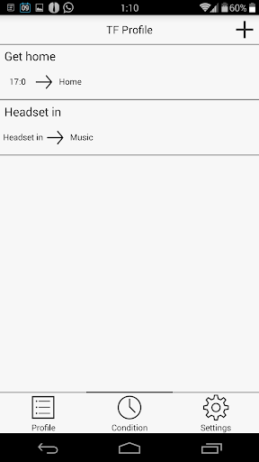 Activate profile by just a click or by conditions (Date, Time, Headset in, Headset out, Power on, Screen on, Battery level, Charging...)