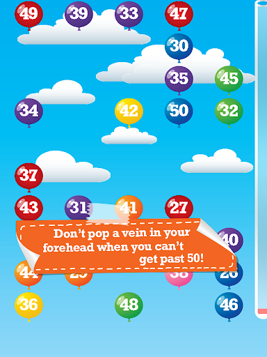 • Pop colorful, randomly arranged, numbered balloons in order from 1 to however far you can get in 60 seconds