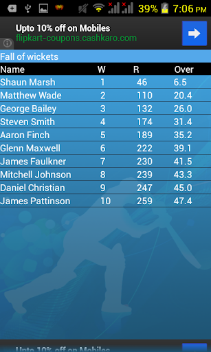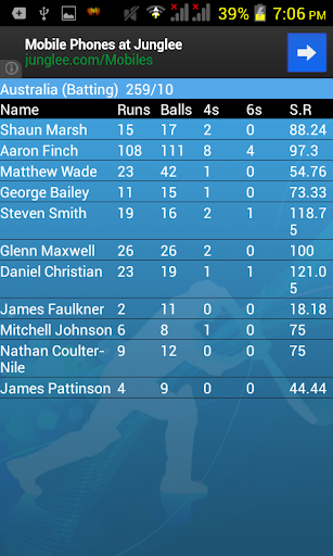 TOM Scores application provide the cricket score (s) for any international live cricket match, with ball by ball update.