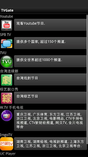 提供常見的隨選電視軟體的點選連結。