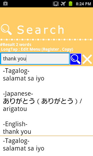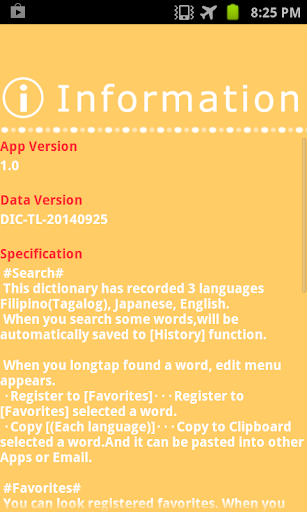 Tagalog(Philippines) Japanese English word dictionary Supports from AndroidOS2.3.3 to AndroidOS4.4