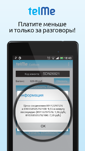 TelMe CallBack является простым и удобным приложением для дешевых звонков. Это отличное решение, когда вам необходимо недорого позвонить в другой город или страну с вашего смартфона или планшета через данные сим карты.