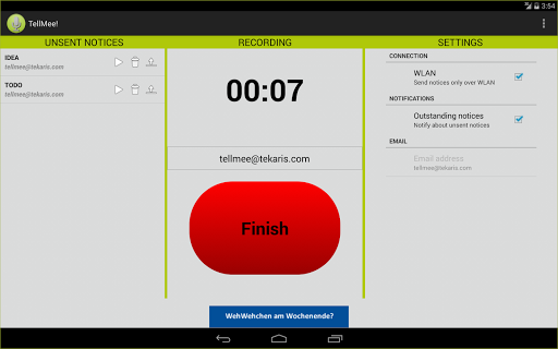 TellMee! sends your notice. No email account on your smartphone/tablet needed!