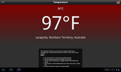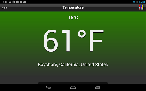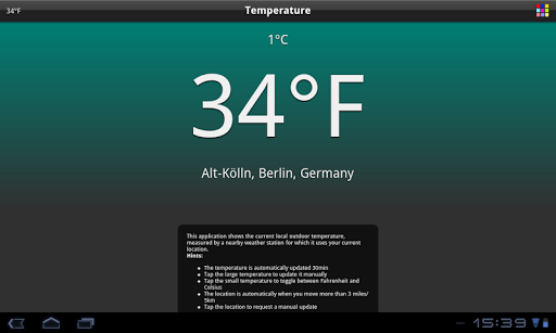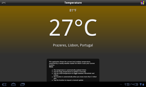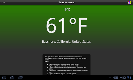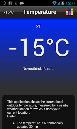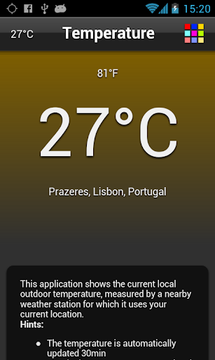This application shows the current local outdoor temperature, measured by a nearby weather station for which it uses your current location.