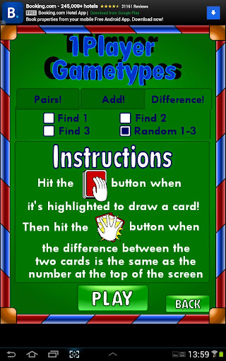 The third mode is Difference. In this mode children must snap when the two cards on the table have a difference that equals the given value. The sub-modes determine what the given value is, three of them being set, and the fourth being random.