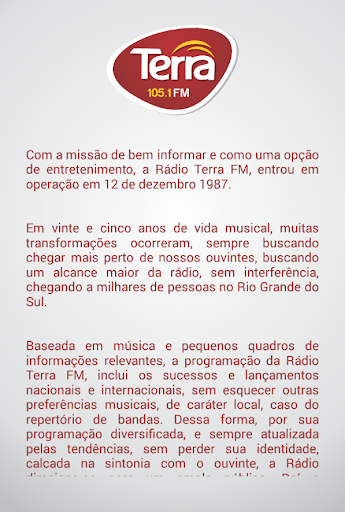 Com a missão de bem informar e como uma opção de entretenimento, a Rádio Terra FM, entrou em operação em 12 de dezembro 1987.