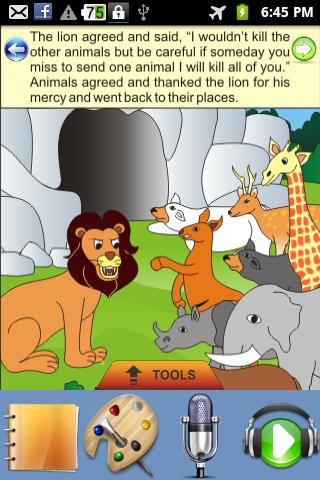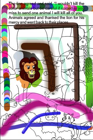 Page 6: The lion agreed to the proposal and said, “I would not kill the other animals but be careful if someday you miss to send one animal I will kill all of you.” Animals agreed and thanked the lion for his mercy and went back to their places.