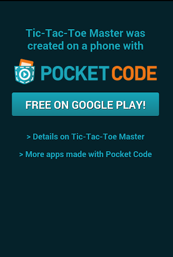 Tic-Tac-Toe Master is one of many apps that was created directly and entirely on a phone using Pocket Code. No PC is needed. See https://pocketcode.org/ for other programs made with Pocket Code. All of them are free software!