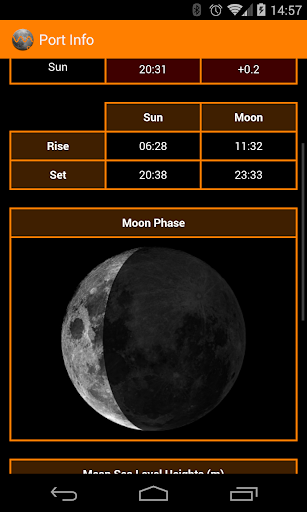 * Additional 'Port Info' information: Sun/Moon rise/set times; Moon phase graphic; display tide/Sun/Moon data for any day within the current 12-month data pack.