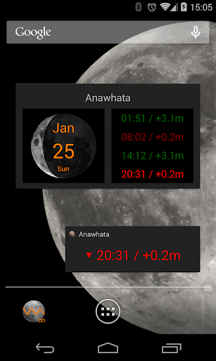 * Home/Lock screen widgets that display either the next tide event or all today's tide events (plus Moon phase) for the currently selected port.