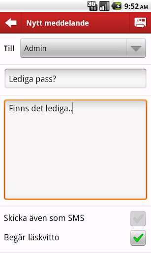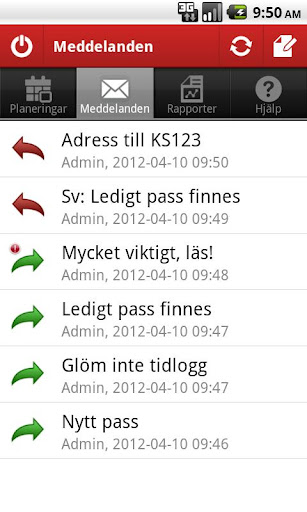 Skicka eller ta emot meddelanden från din arbetsledning. (Obs Om du använder sms-avisering av meddelande till arbetsledningen tillkommer en operatörsberoende kostnad per skickat sms)