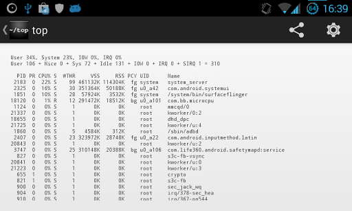 Top shows the currently running tasks ordered by CPU load. While other task managers show only the current tasks, but still don't tell you how much CPU load they need, this one tells you exactly, which other App makes your device slow down.