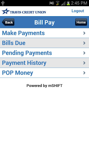 To access this and other Travis Credit Union account services, download this free app to your smart phone today. Our app gives you access to your Online Banking accounts at any time of day. You can review balances and transaction histories, transfer funds between TCU accounts and view images of checks already posted to your account. You can also use our app to access our free Bill Pay system to schedule and pay your recurring monthly bills.
