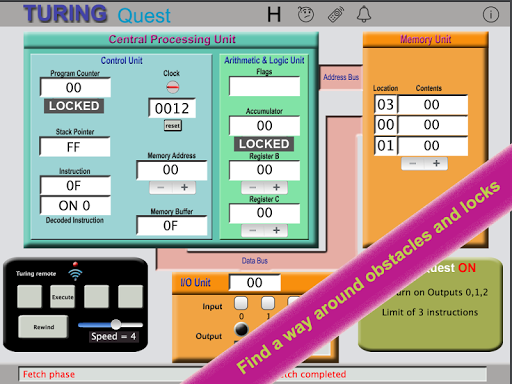 Try the included Turing Quest - coding challenge, 12 graded problems to create machine code programs solving problems set.