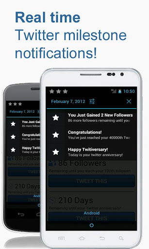With this app you will never have another "AWWWWW I MISSED MY 5000th TWEET!" type moment again! In addition to this you will also be able to keep track of gains and losses in followers with direct statusbar notifications as they happen.