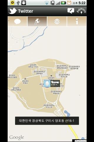 - 해당 트윗의 작성위치로 가기 : 타임라인에서 트윗의 우쯕 하단에 위치정보 포함 아이콘이 있다면 해당 트윗을 클릭! 맵으로 전환되며 해당위치로 이동