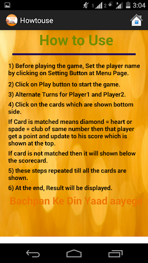 5) these steps repeated till all the cards are shown.