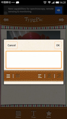 和过滤器10余种时尚首先,我打扮时尚的图像中容易用相机拍摄的图像或您的相册!从粗放的字体中选择您所选择的字体,字母大小写处理!字体可以增加额外下载。的字符的安排可以被设置,以适应图像的透明度,文本颜色,厚度边界线的颜色的种类和颜色的阴影的味道。此外,许多中国的汉字字库,我们是完全兼容的垂直写入支持,因为它是竖写的全力支持。您可以使用各种形状,如一个明星,心脏或圆和气球的字符的一部分。操作简单,非常直观。您可以编辑编辑部分直接接触很容易!