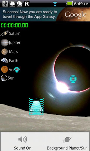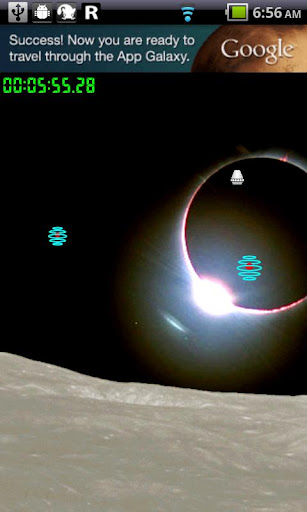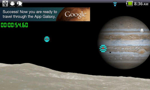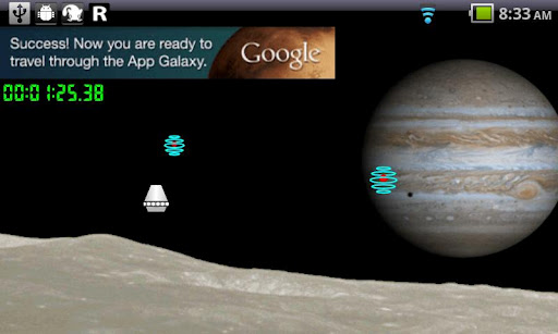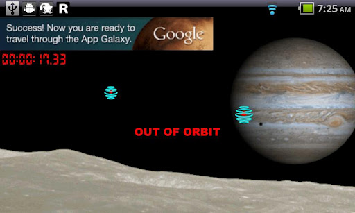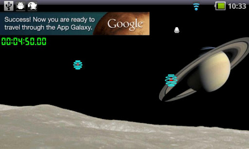 Flick the UFO appeared on a moon and watch it moving under the influence of the gravity of the two artificial planets.