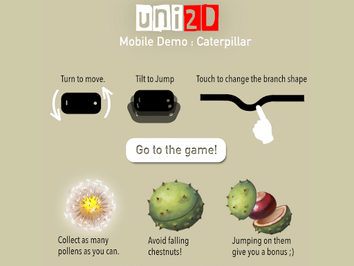 You play “Caty" a small caterpillar living on a tree branch who loves collecting pollens.